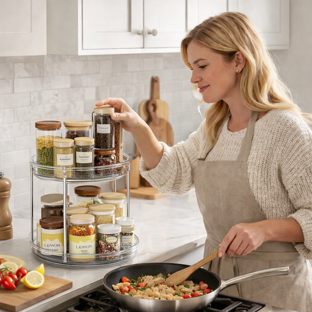 2-Tier Rotating Lazy Susan Spice Rack Organizer – Maximize Your Space & Storage Capacity